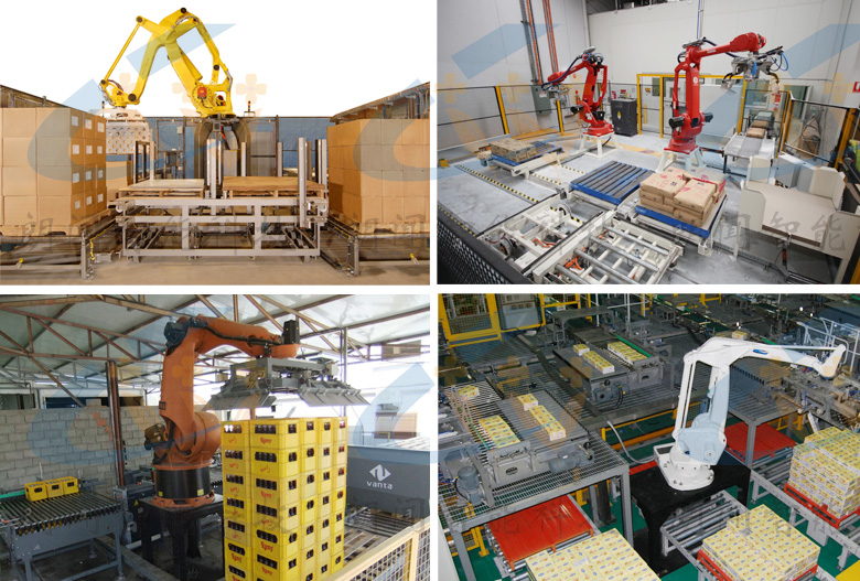 应用:饮料、乳业、食品、啤酒、石化、药品等生产线的搬运、拆装、摆放等方面;物流行业的装箱与卸载等方面;尤其是在箱子、袋类装载货物以及较为规则的批量生产线上。